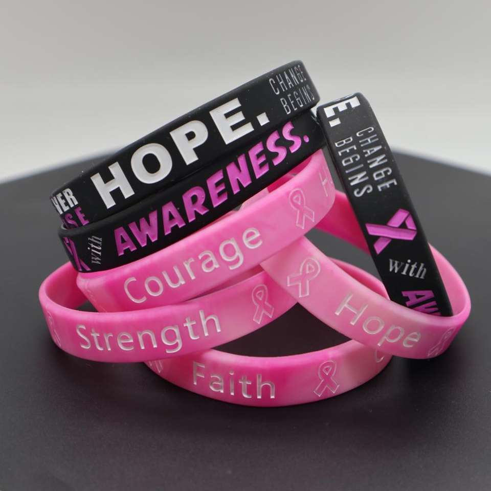 Nombre:Pulseras de Concienciación sobre el Cáncer de Mama con Corazón y Cinta Rosa
