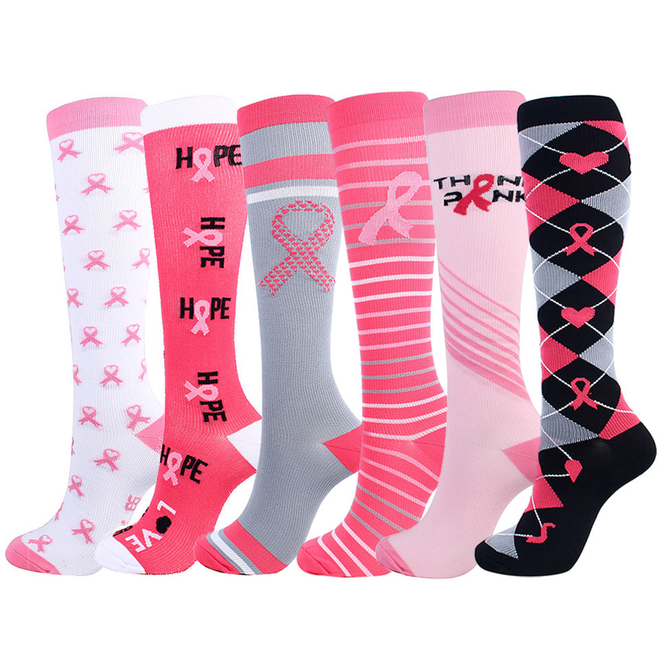 Calcetines de concientización sobre el cáncer de mama Cinta Rosa Calcetines sobre la pantorrilla Calcetines de compresión para el cáncer de mama para mujeres