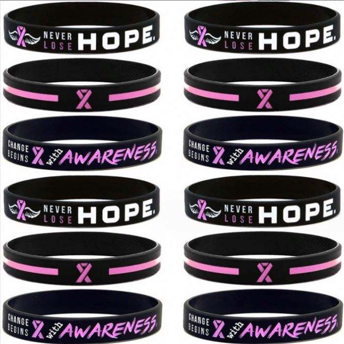 Pulseras de Silicona de Alerta Médica con Cinta Rosa para la Concientización sobre el Cáncer de Mama, Pulseras Personalizadas con Logotipo
