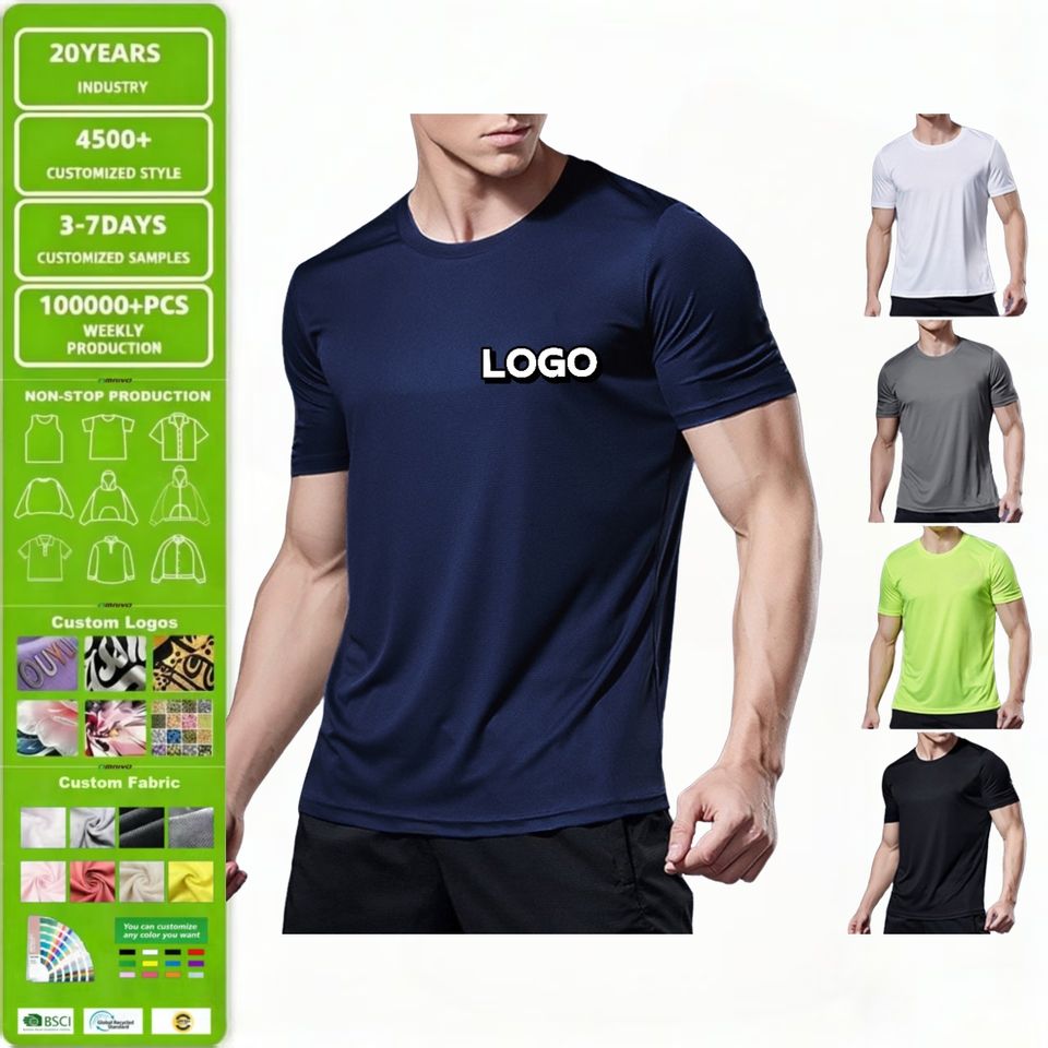 Camiseta Deportiva Transpirable de Poliéster 100% con Logotipo Personalizado para Hombre, de Secado Rápido, Manga Corta, para Gimnasio, Aire Libre, Maratón, Running