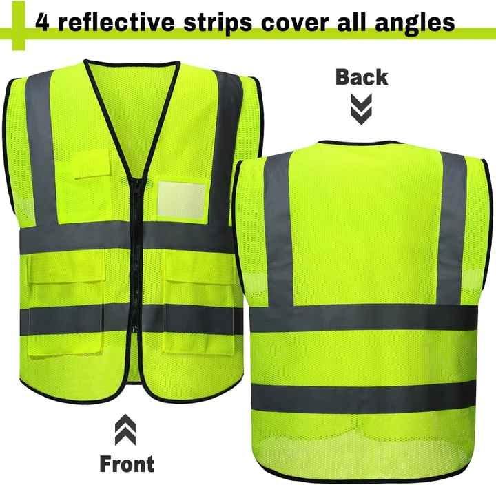 Chalecos DE SEGURIDAD transpirables con 5 bolsillos para hombres y mujeres, chaleco reflectante de alta visibilidad para ropa de trabajo protectora al aire libre