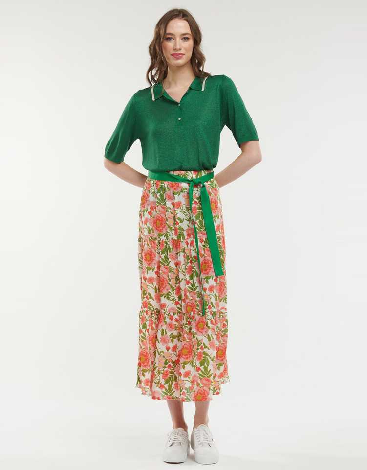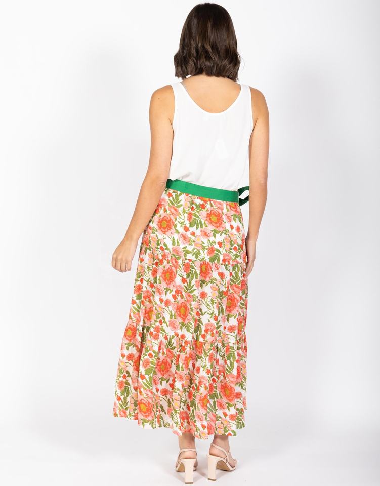 Faldas Midi Transpirables con Corte en A hasta el Tobillo para Mujeres y Niñas, Estampado Floral Informal, Cintura Elástica con Cinturón, Ecológicas 100%