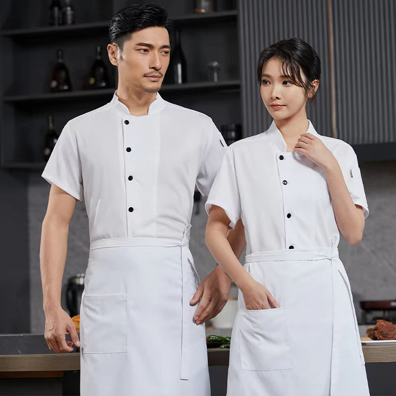 Uniforme de Chef Transpirable, Camisa de Trabajo de Cocina, Chaqueta de Chef de Manga Corta para Hombre y Mujer, Uniforme de Cocina para Servicio de Alimentos