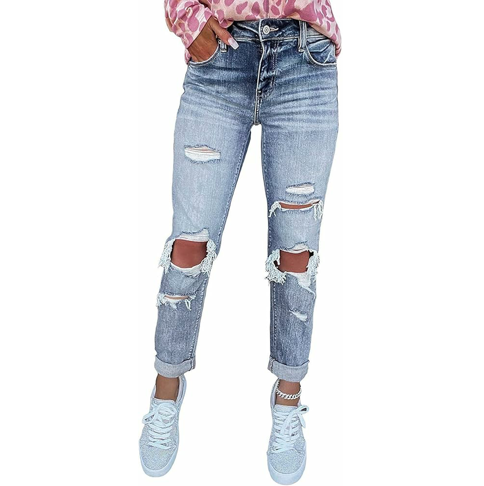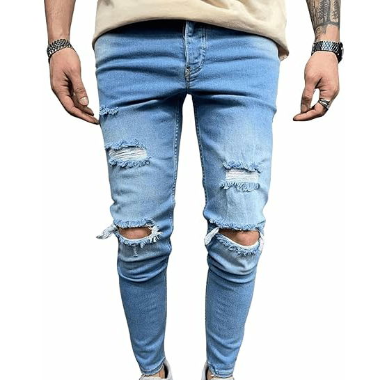 Jeans de Mezclilla Ajustados y Transpirables para Hombre, Estilo Desgastado, Color Sólido, Rotos y Elegantes