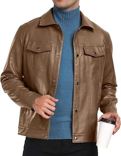 Chaqueta de Cuero Vacuno para Hombre, Transpirable, Ecológica, de Secado Rápido, Cálida para Invierno, Cuello Alto, Estilo Casual, Alta Calidad, Precio Razonable
