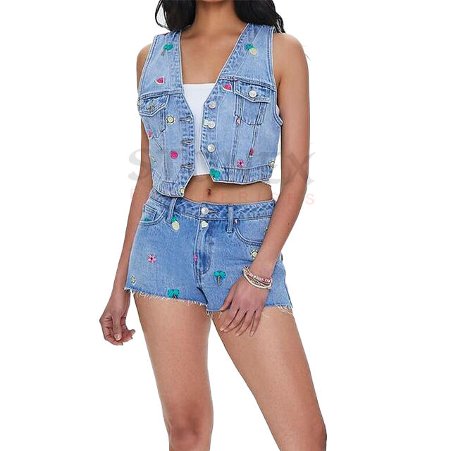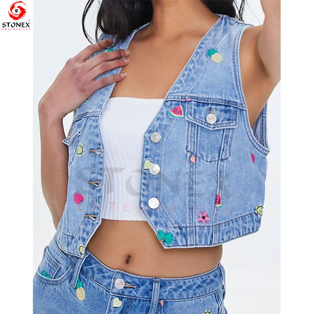 Chaleco vaquero corto bordado para mujer a la moda transpirable, chaleco vaquero sin mangas, el mejor rendimiento