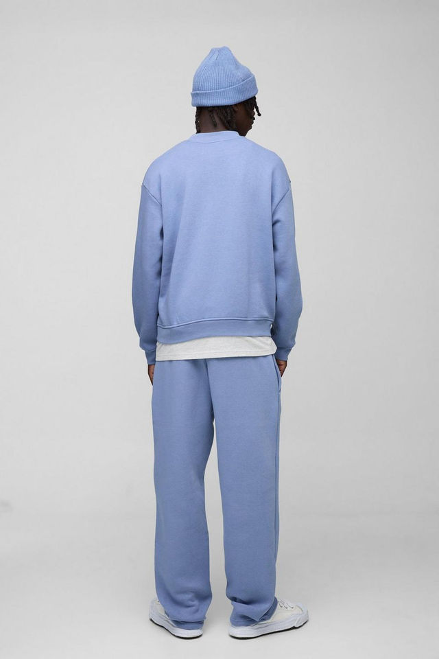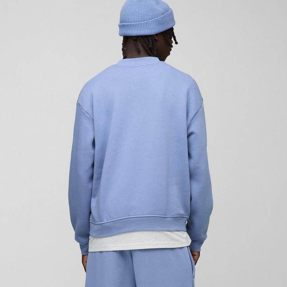Sudadera de Hombre Oversize de Algodón Mezclado Personalizada, Transpirable, de Alta Calidad, Azul Polvoriento, con Cuello Extendido y Corte Holgado