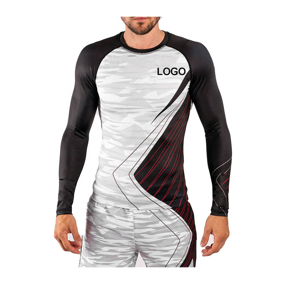 Transpirable de manga larga MMA Rash Guard Custom Fit Mens Compression Training Top para Grappling Gym y Jiu Jitsu