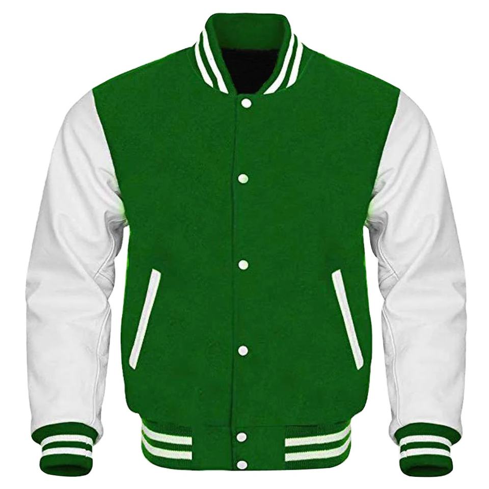 Chaqueta universitaria transpirable de color sólido con mangas de cuero para hombre, gran oferta, nueva chaqueta de béisbol universitaria Lisa para hombre