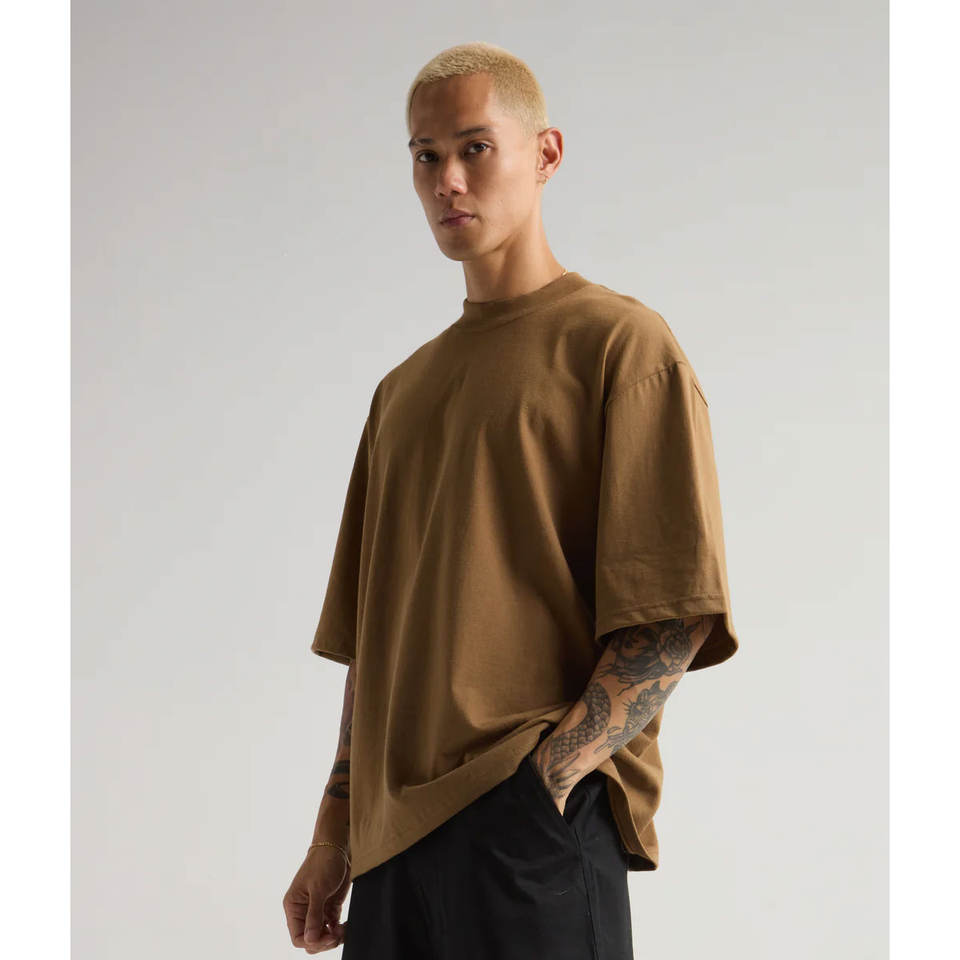 Camiseta de calle de algodón pesado preencogido de Color Natural transpirable Camiseta sólida con cuello redondo y camiseta de manga corta