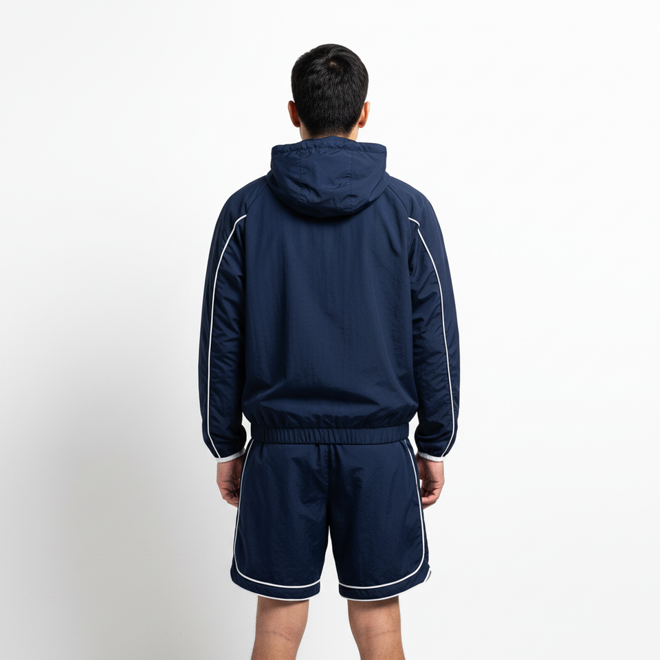 Conjunto de Chaqueta Casual de Primavera de Color Sólido, Tejido de Poliéster Transpirable, Cortavientos, Ligero, con Capucha, Cintura Elástica, Corte Regular, Corto