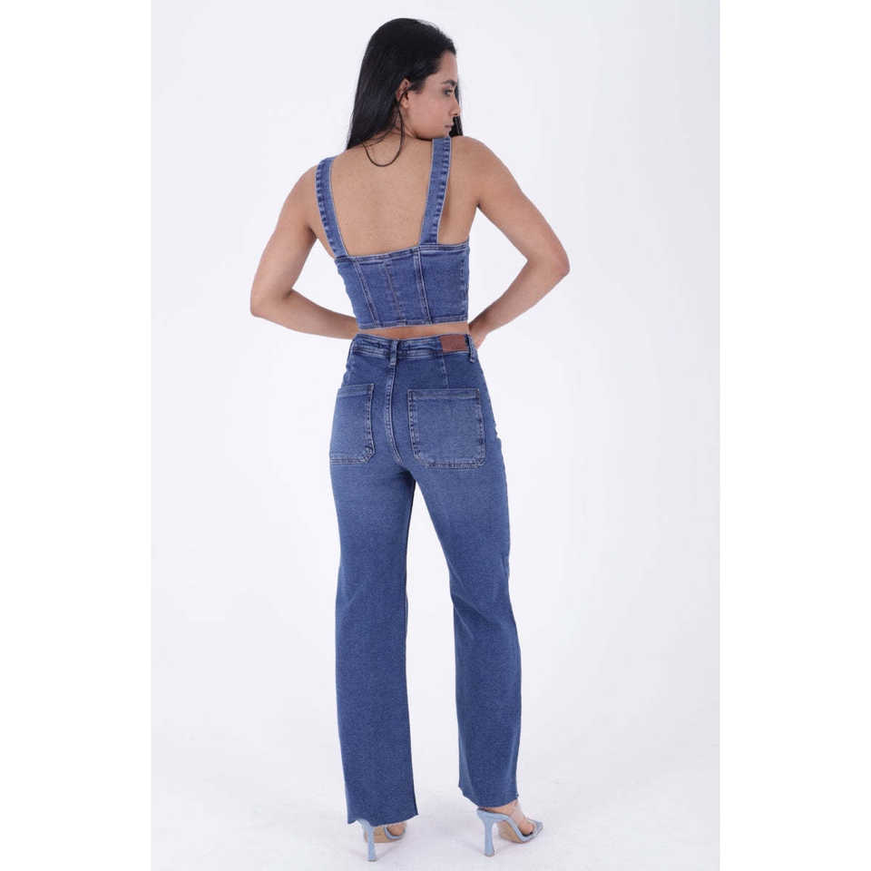 Jeans Palazzo Transpirables para Mujer, Detalle de Bolsillo Decorativo, Opciones de Cintura Baja y Alta, Estilo Boyfriend, Pierna Recta Ancha, Talla XL, Ajustados, Holgados