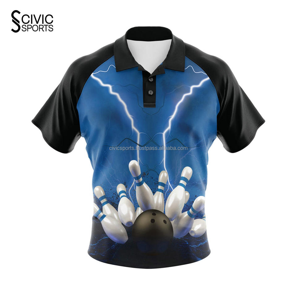Poliéster transpirable Adultos Ropa deportiva Logotipo personalizado Impresión Club de bolos Jersey Corto personalizado
