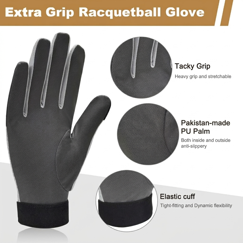 Guantes de Racquetball Transpirables con Cobertura Completa de Dedos, Absorción de Impactos, Soporte para Muñeca, Compresión y Estabilidad para Aumentar la Velocidad del Swing