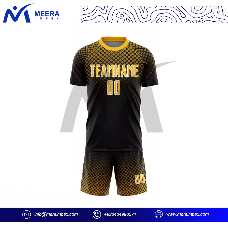 Sublimación transpirable Logotipo personalizado Camisetas de fútbol Ropa deportiva Uniformes Conjunto Equipo de entrenamiento de fútbol negro y amarillo