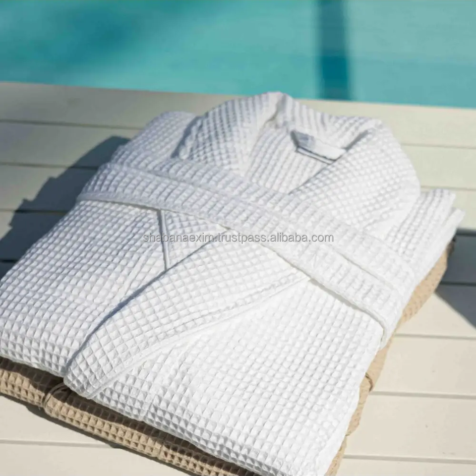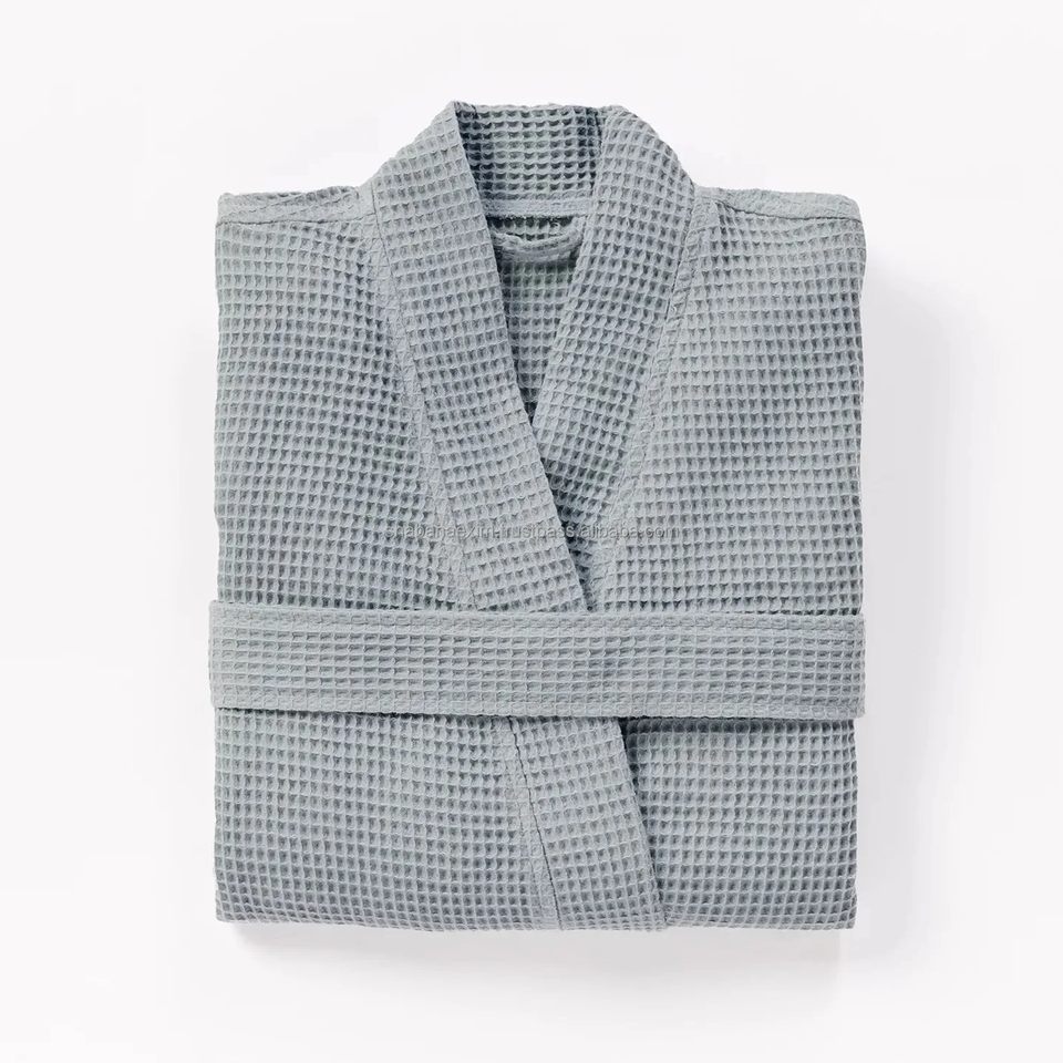 Albornoz de gofre transpirable para spa y hotel, de secado rápido, cómodo, unisex, para adultos, tipo toalla de playa, con cinturón