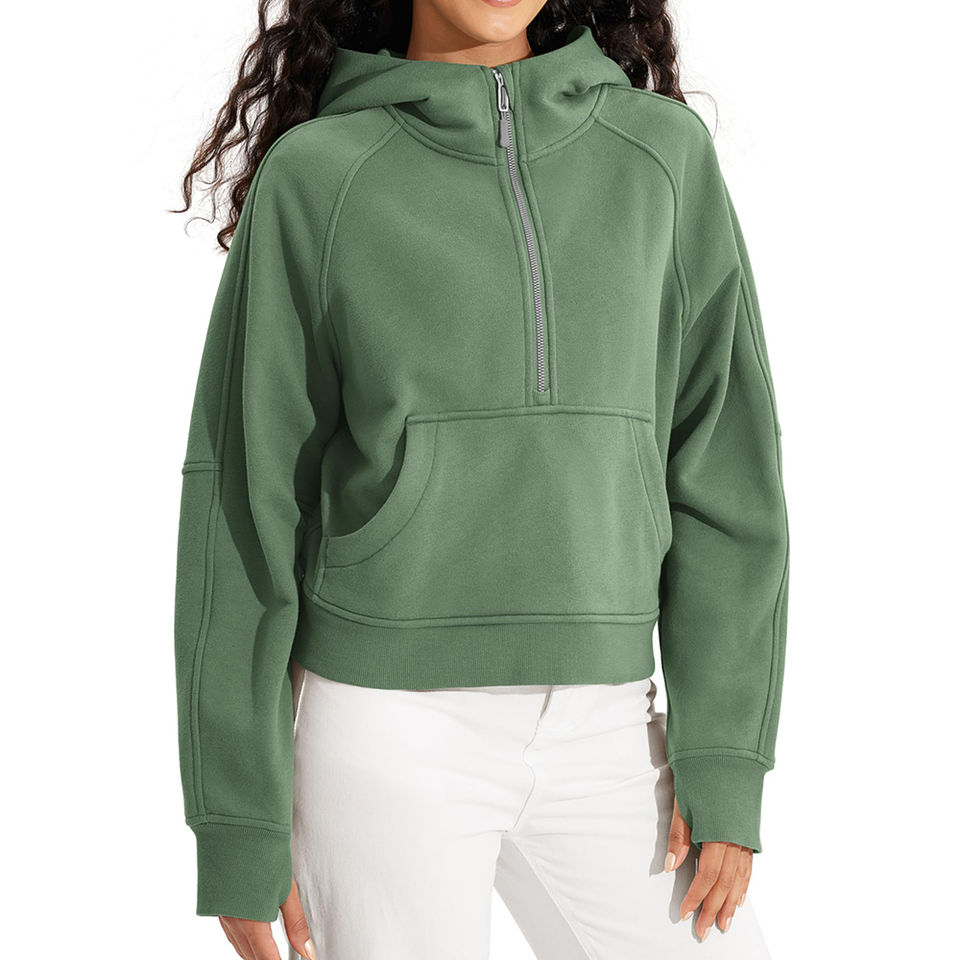 Nombre del producto:Sudadera con capucha y media cremallera para mujer