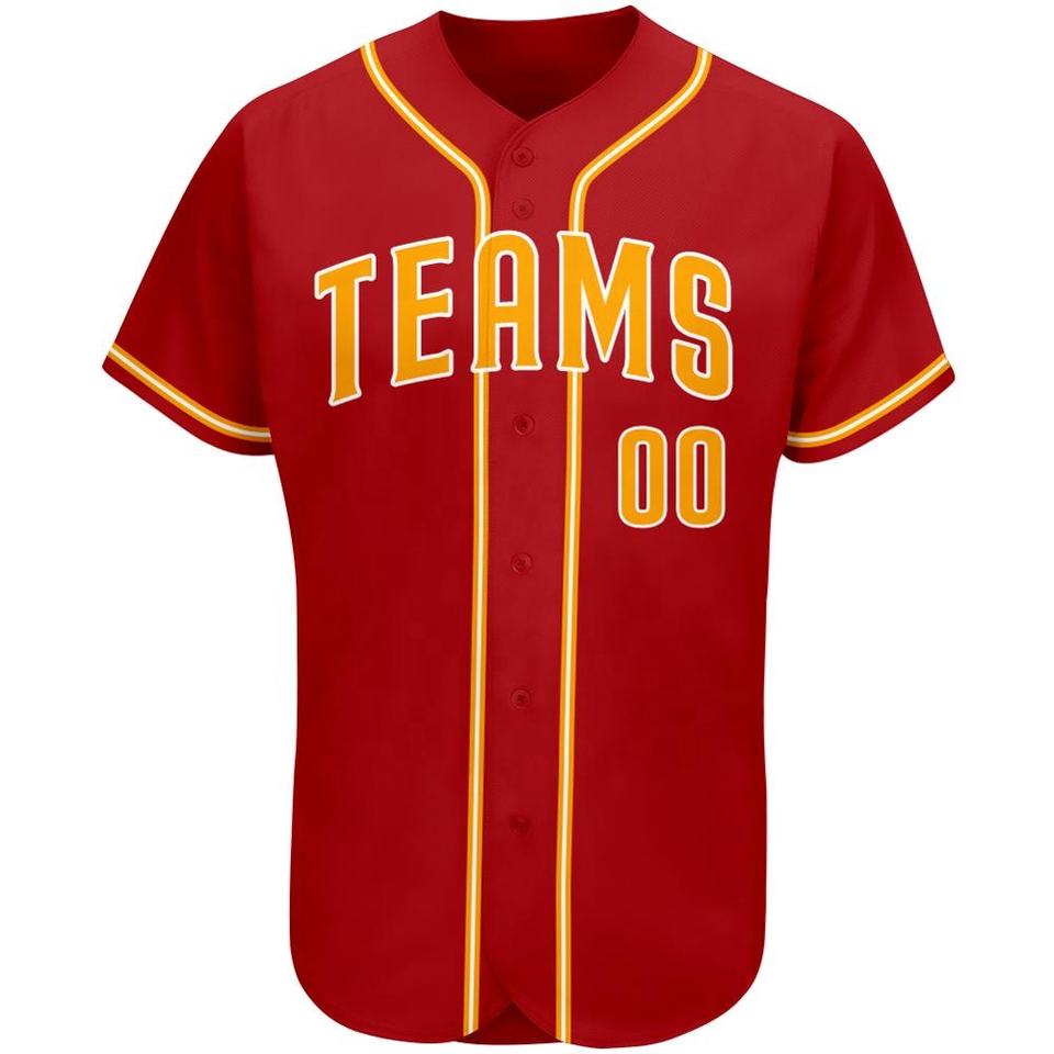Jersey rojo de béisbol de secado rápido de poliéster transpirable botón personalizado sublimado cosido Logo nombre camiseta a rayas