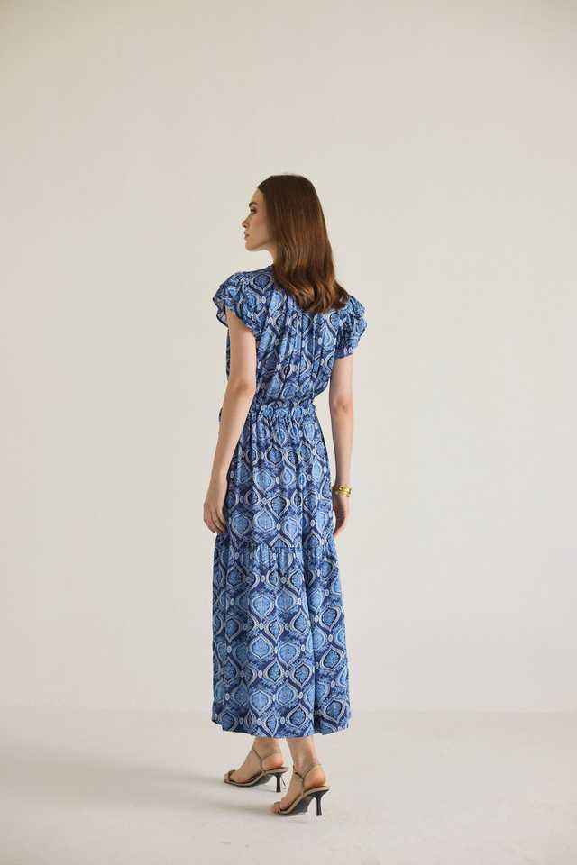 Breezy All-Day Comfort Maxi Dress Llamativo Azul Impreso Movimiento pensativo Tejido Technics Plain Dyed