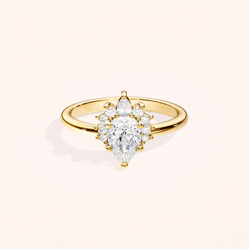 Anillo de Compromiso con Diamante Cultivado en Laboratorio con Certificación IGI, Corte Pera, en Oro Blanco Sólido de 14 Quilates