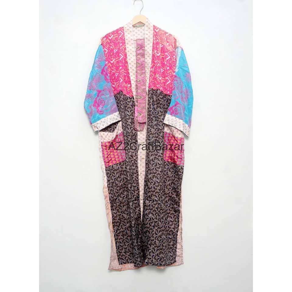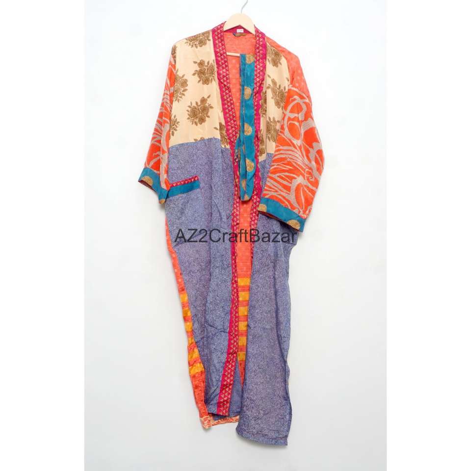 Bata de Novia 100% Seda Lujosa y Suave para Mujer, Ropa de Dormir Larga, Kimono Vintage Indio Reciclado de Sari con Logo Trasero, Verano