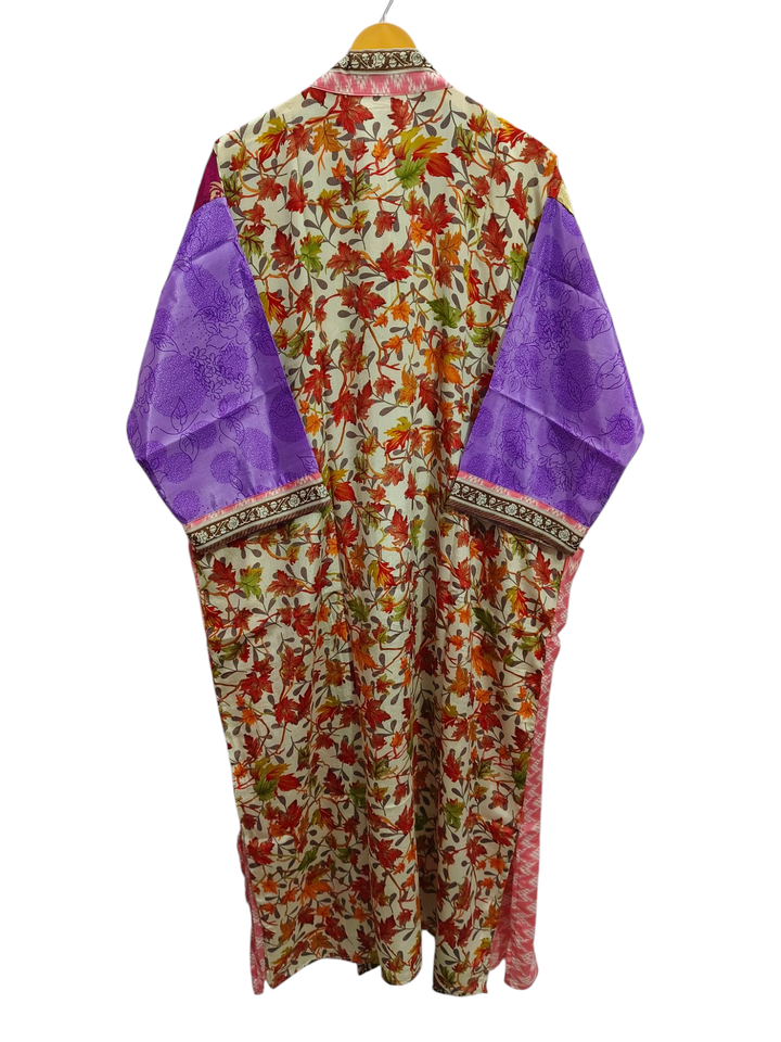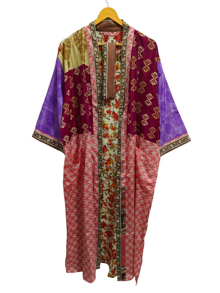 Bata de novia Bata de seda ligera para mujer Ropa de noche Bata larga, Kimono Sari de seda reciclada vintage indio con estampado floral,