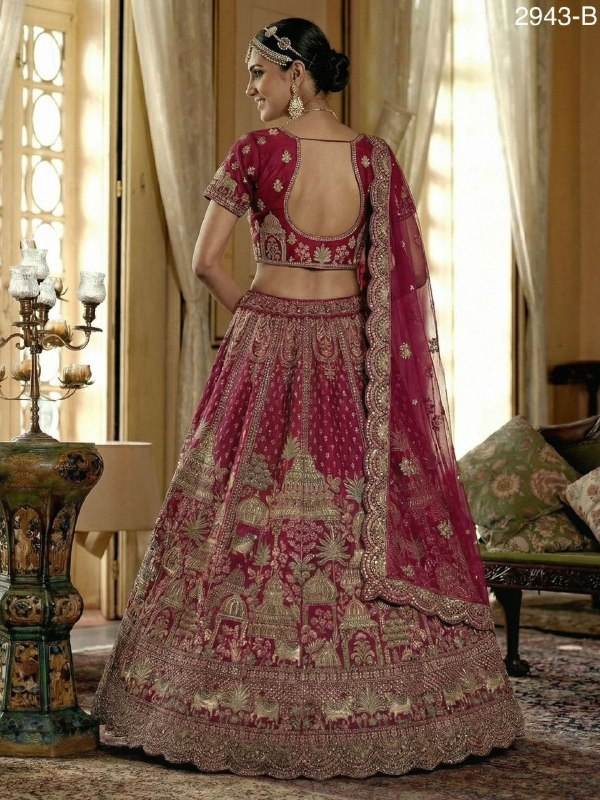 Ropa de Novia, Lehenga Choli de Seda con Bordado Múltiple, Compra en Línea en India a Precio de Mayoreo, Proveedor y Exportador Mundial