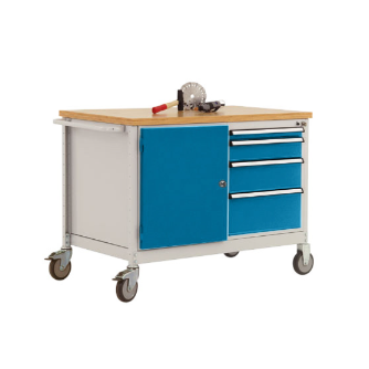 Banco de trabajo móvil BrigFox Modelo 4 – banco de trabajo móvil con tablero de multiplex de 30 mm, compartimento con puerta y 4