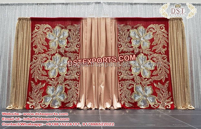 Fondo brillante y hermoso para escenario de Mehandi, telón bordado de Sangeet, cortinas de Sangeet, escenario de Cachemira y pavo real