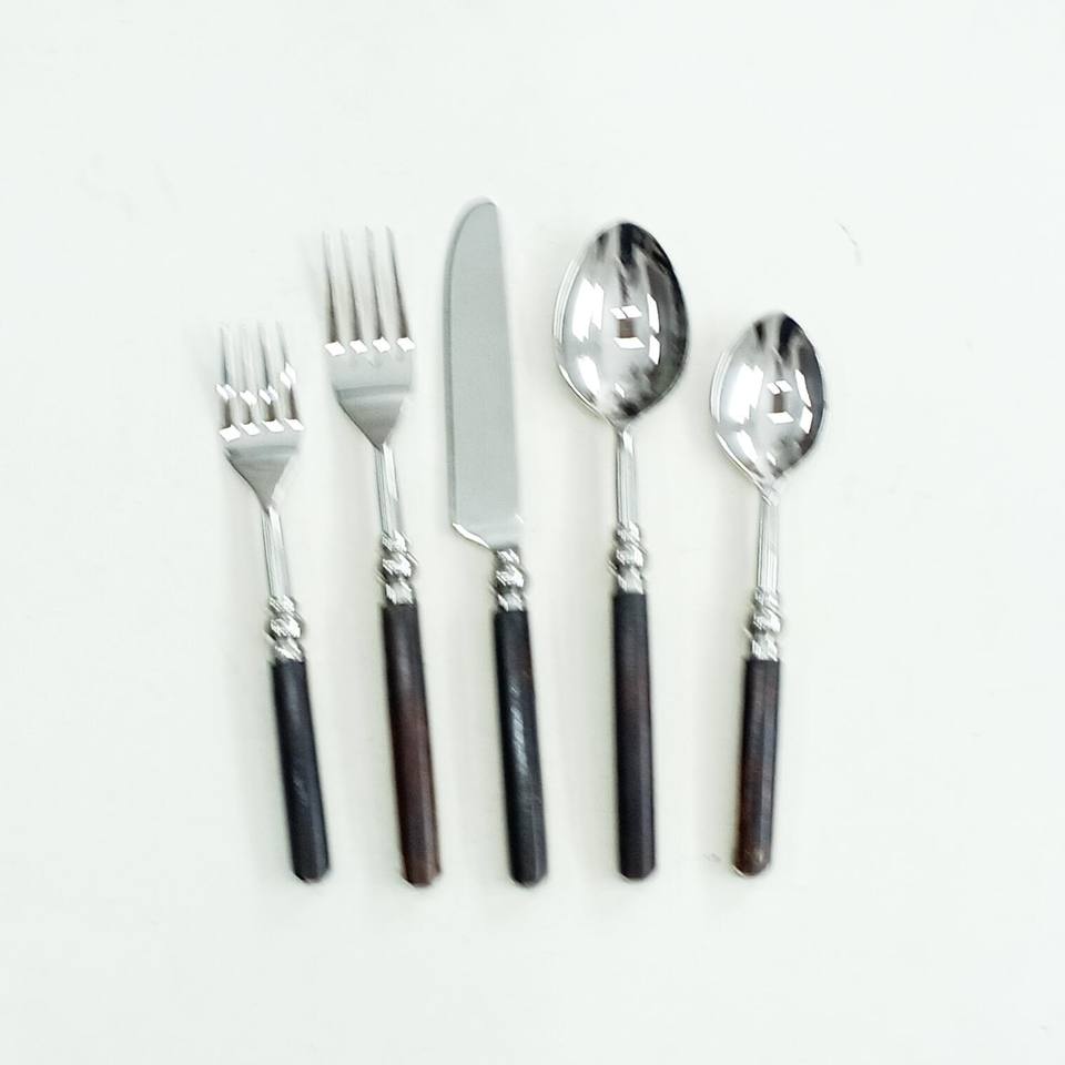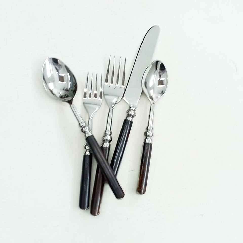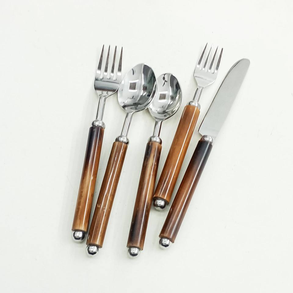 Juego de cubiertos de acero inoxidable multifuncional y ecológico de la colección Bright, con mango hecho a mano en color marrón hueso natural y acabado espejo.