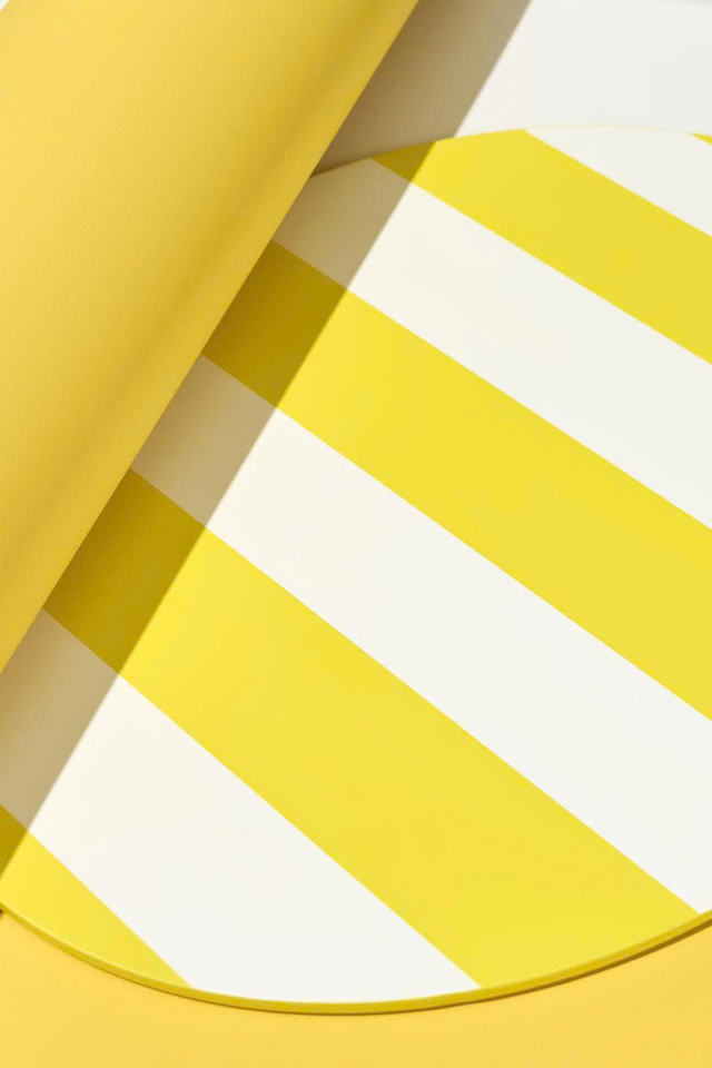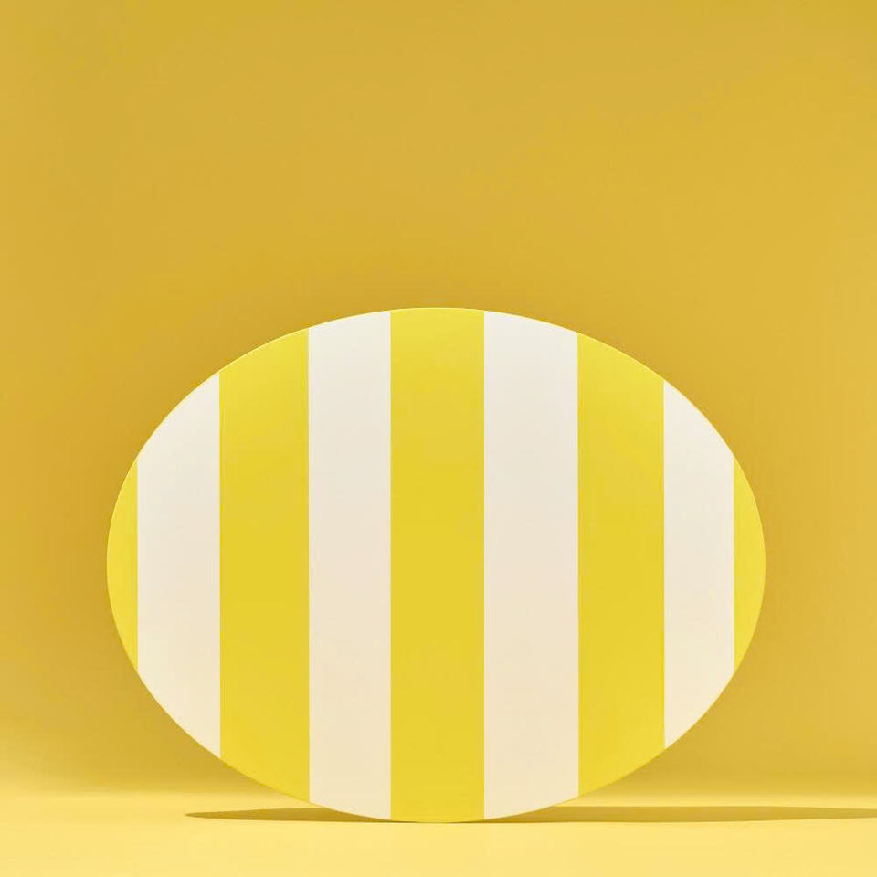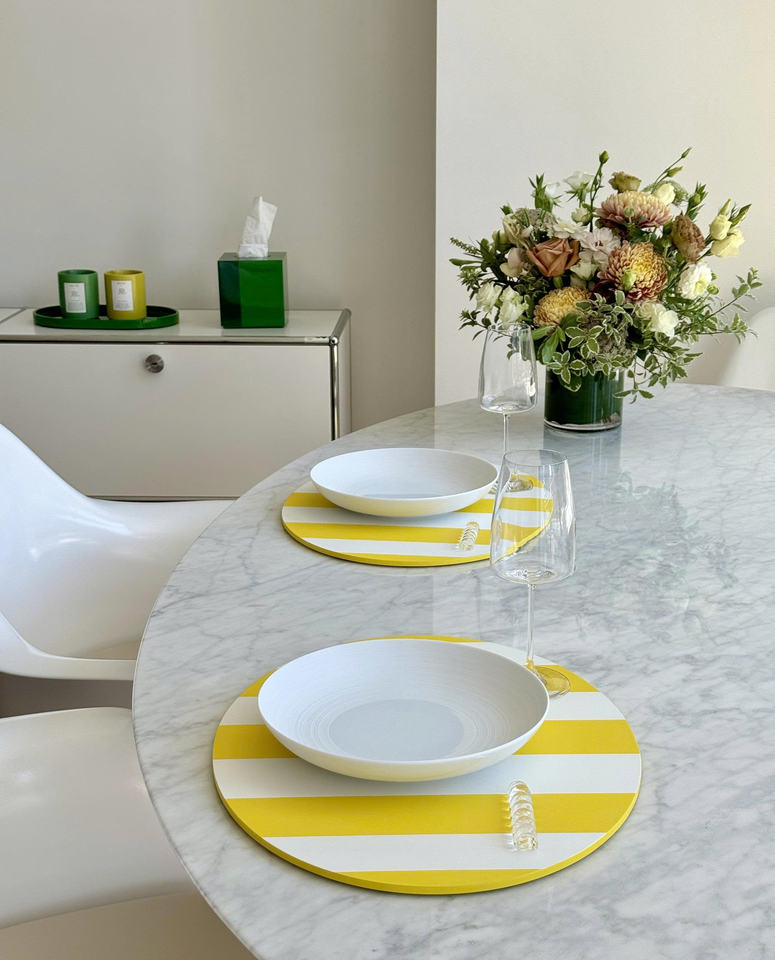 Salvamanteles redondo de MDF lacado con bloques de color brillantes, diseñado para espacios de comedor contemporáneos, colecciones de vajilla de marca privada.