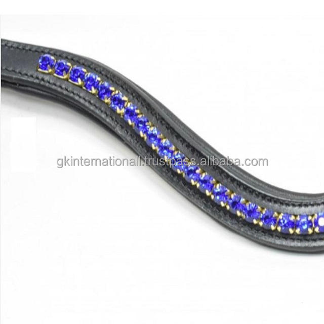 Banda de cuero para cejas con diseño personalizado, accesorio brillante y brillante con cristales azules incrustados, canal vacío, banda para cejas acolchadas con forma de onda profunda