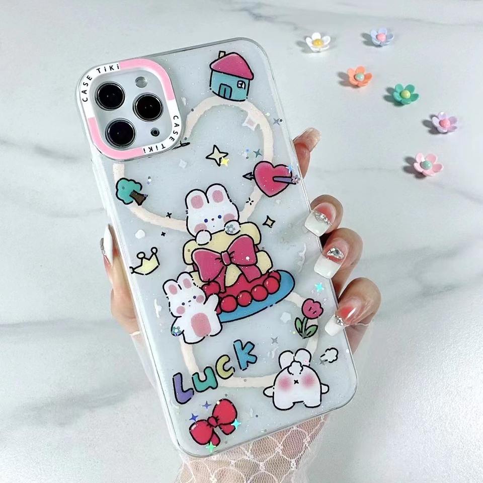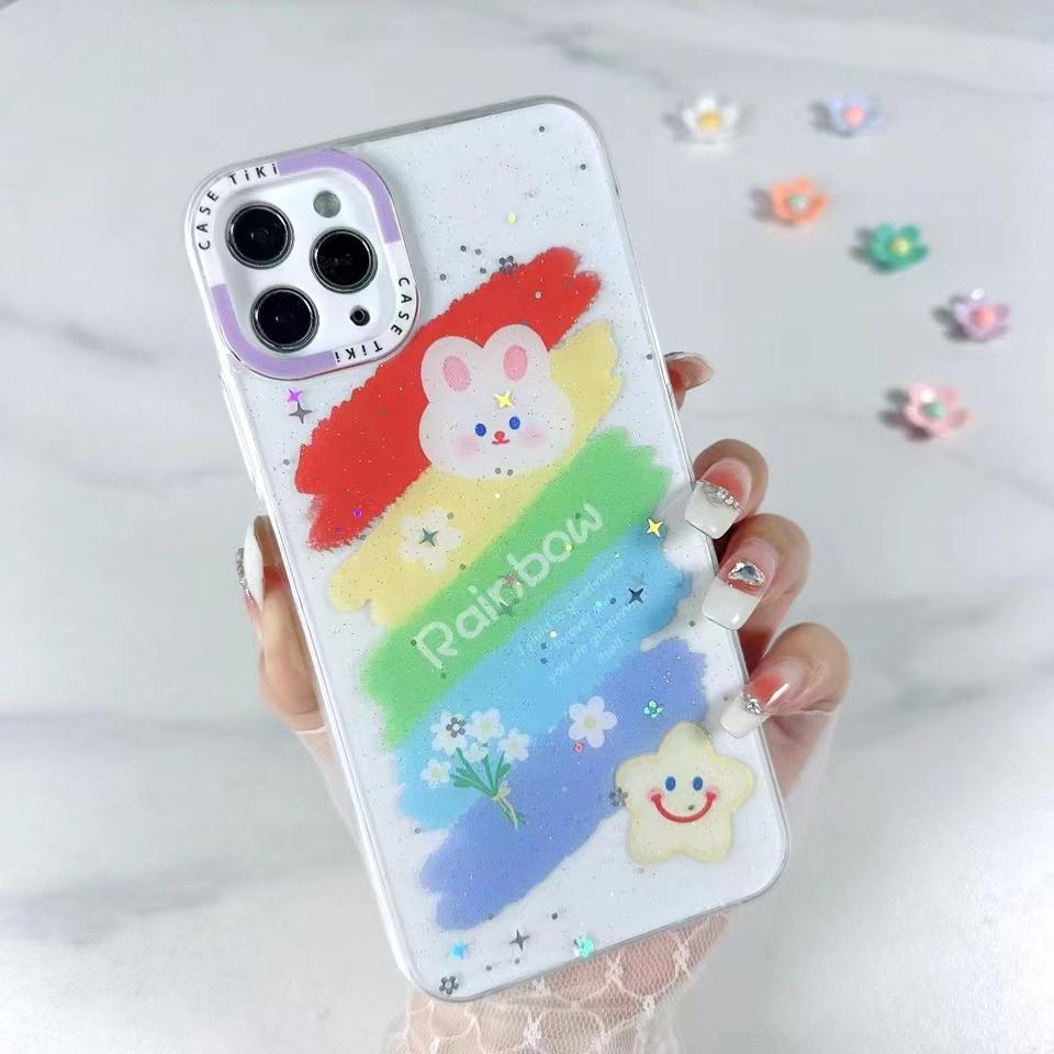 Brillante y translúcido de segunda generación Glitter Drop Glue Painting Cell Phone Case para iPhone para Samsung