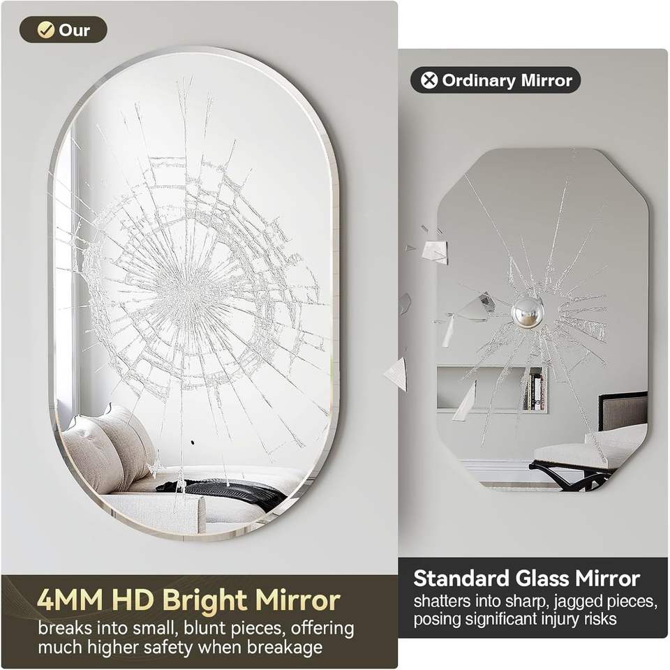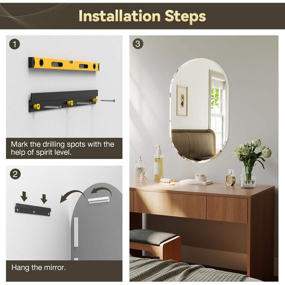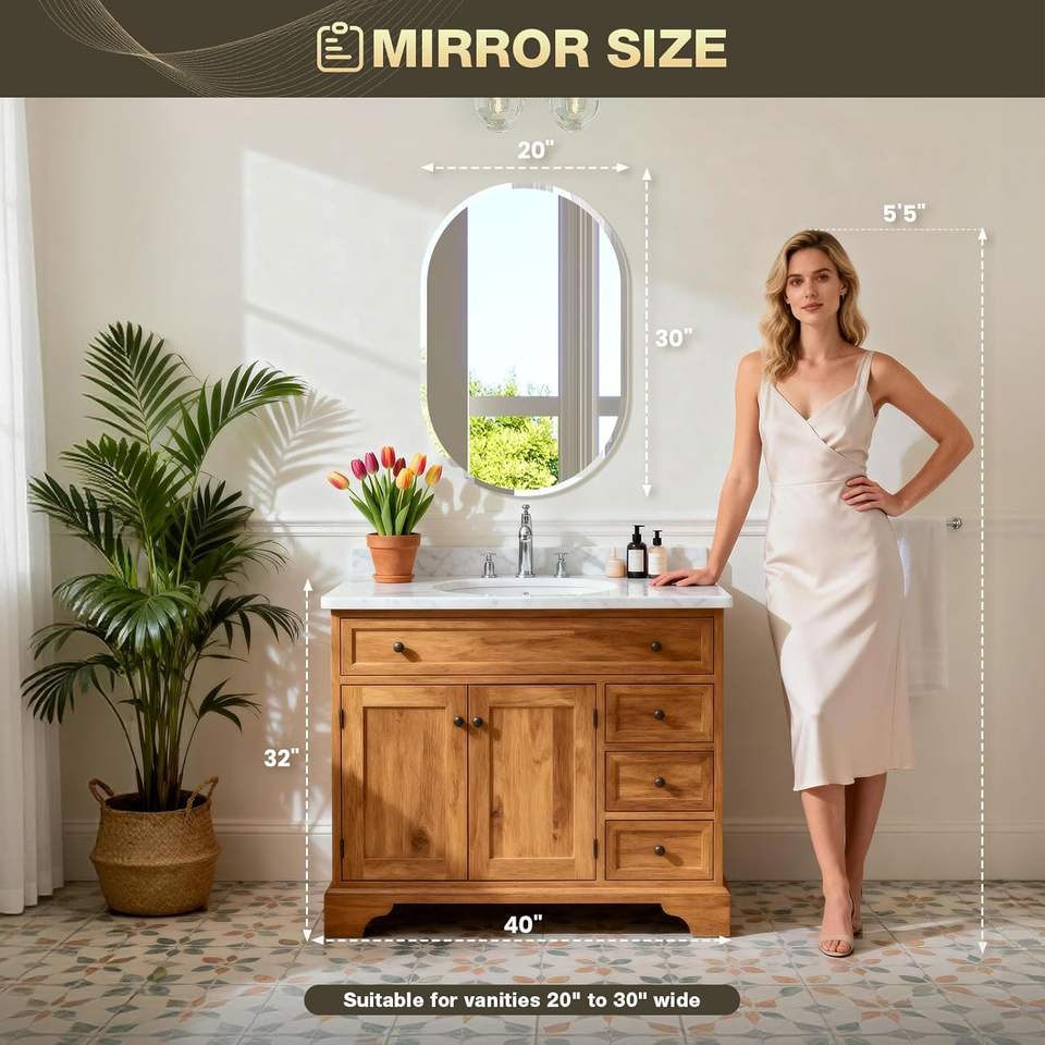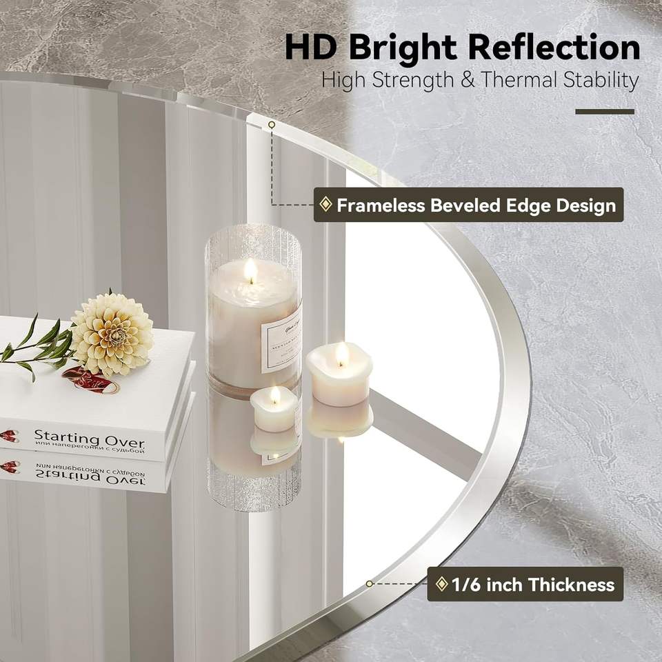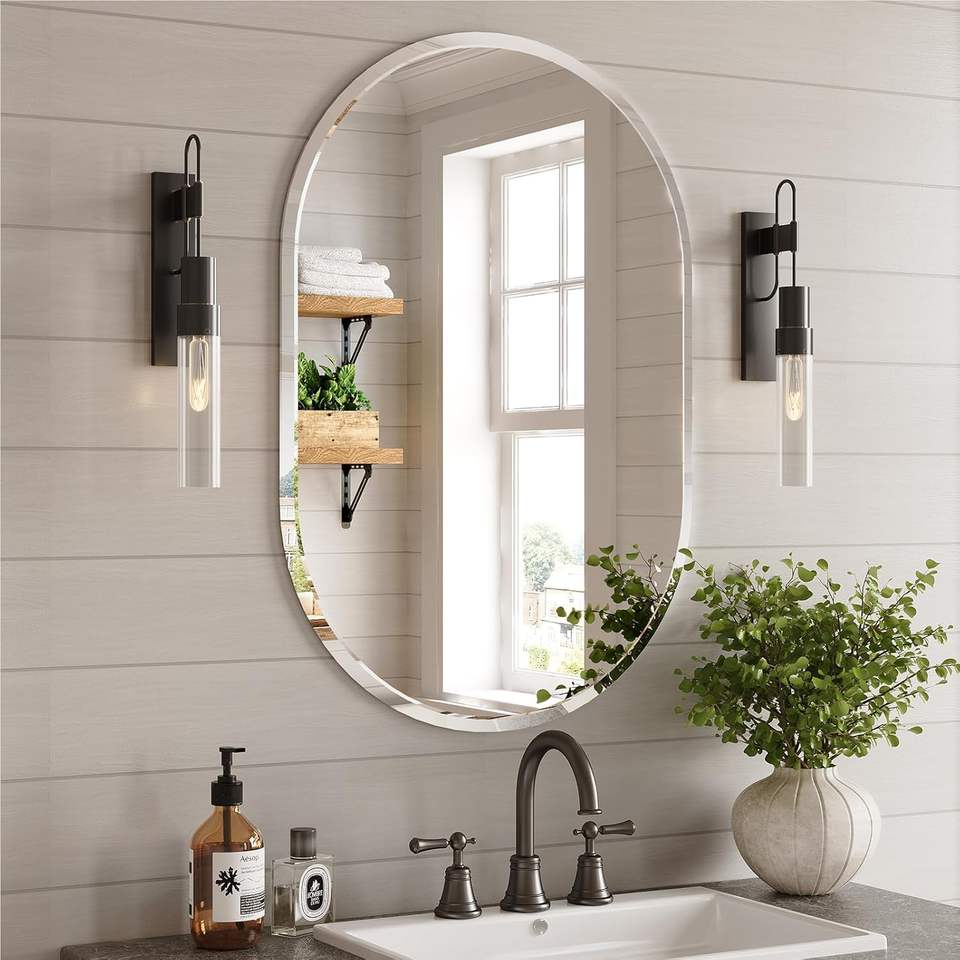 Espejo Ovalado sin Marco Brightify, Varios Tamaños, Borde Biselado, Espejo de Vanidad para Baño, Estilo Moderno Rústico
