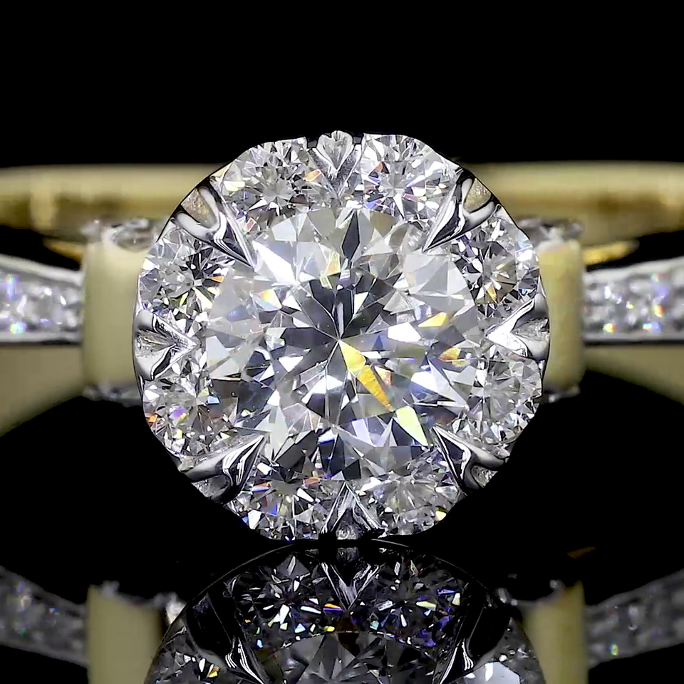 Brilliance Crest Lab 14K/18K Oro Corte redondo Pave Band Anillo de diamantes