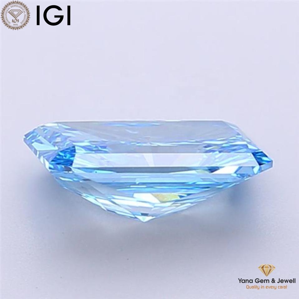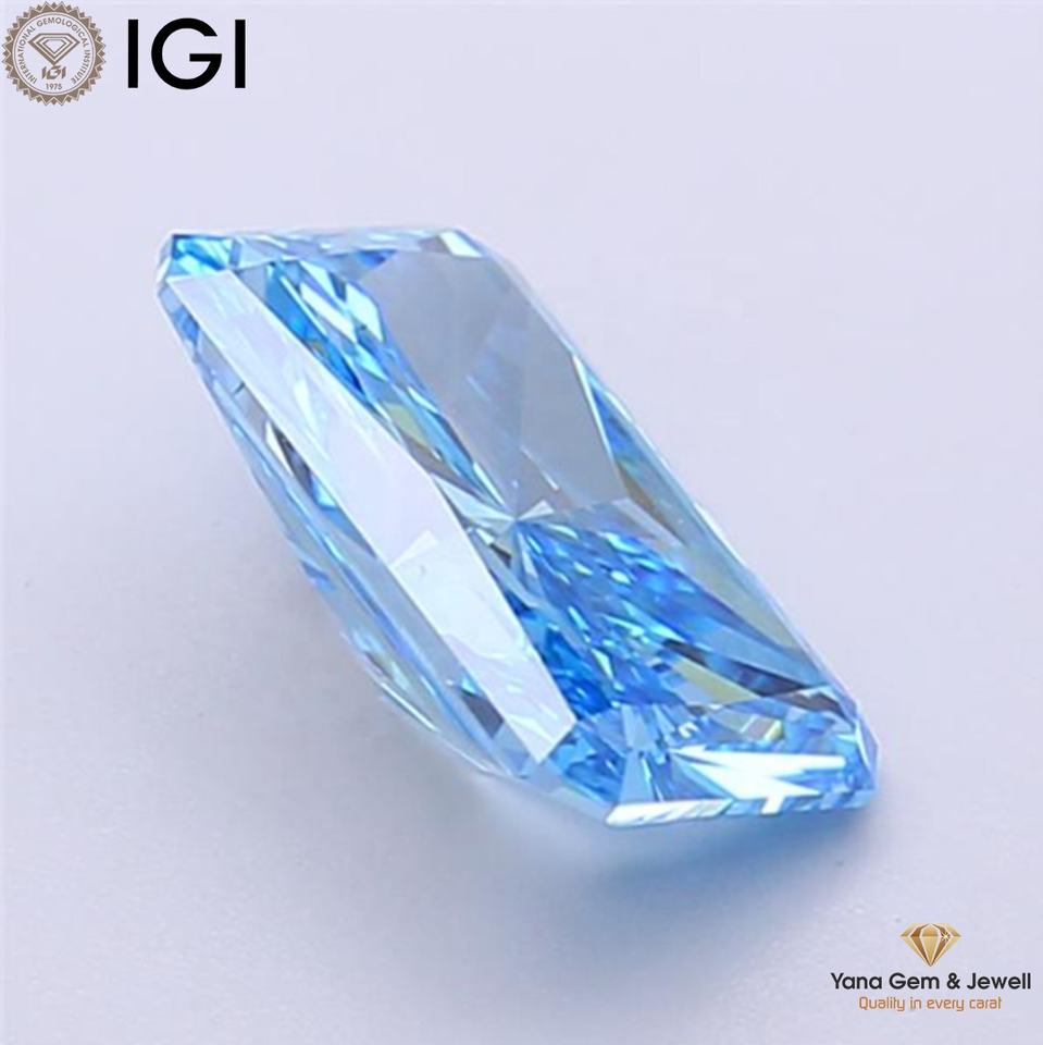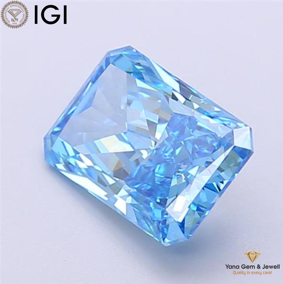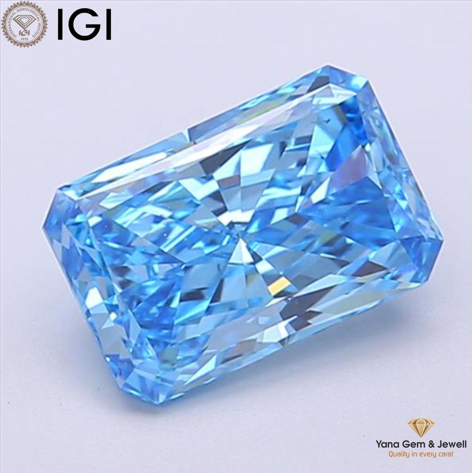 Anillo de Compromiso con Diamante Cultivado en Laboratorio CVD de Corte Radiante Brillante de 2.00 Quilates, Color Azul Intenso, Claridad VS2, Certificado IGI