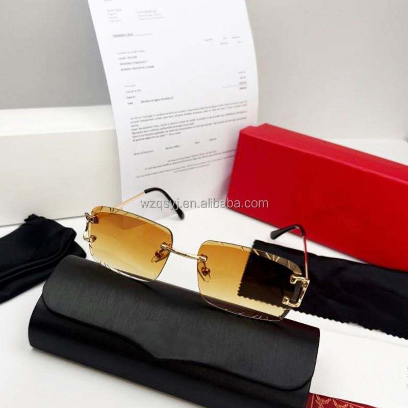 Gafas de Sol de Diseño, Cuadradas, Sin Montura, Unisex, con Corte de Diamante, Protección UV400, de Lujo, con Caja y Recibo
