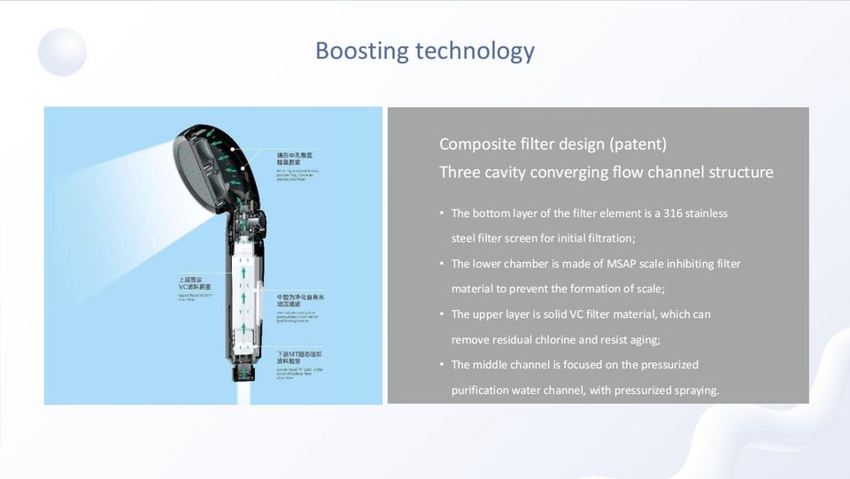 Function:decholorizaion,anti bacteria, anti water scale, beautifying skin