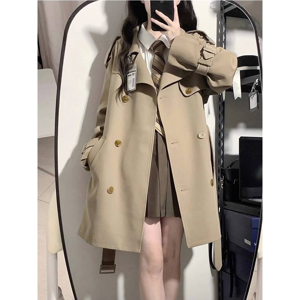 Gabardina Informal de Estilo Británico para Mujer, Primavera/Otoño 2024, Estilo Simple de Alta Gama, Holgada, Largo Medio
