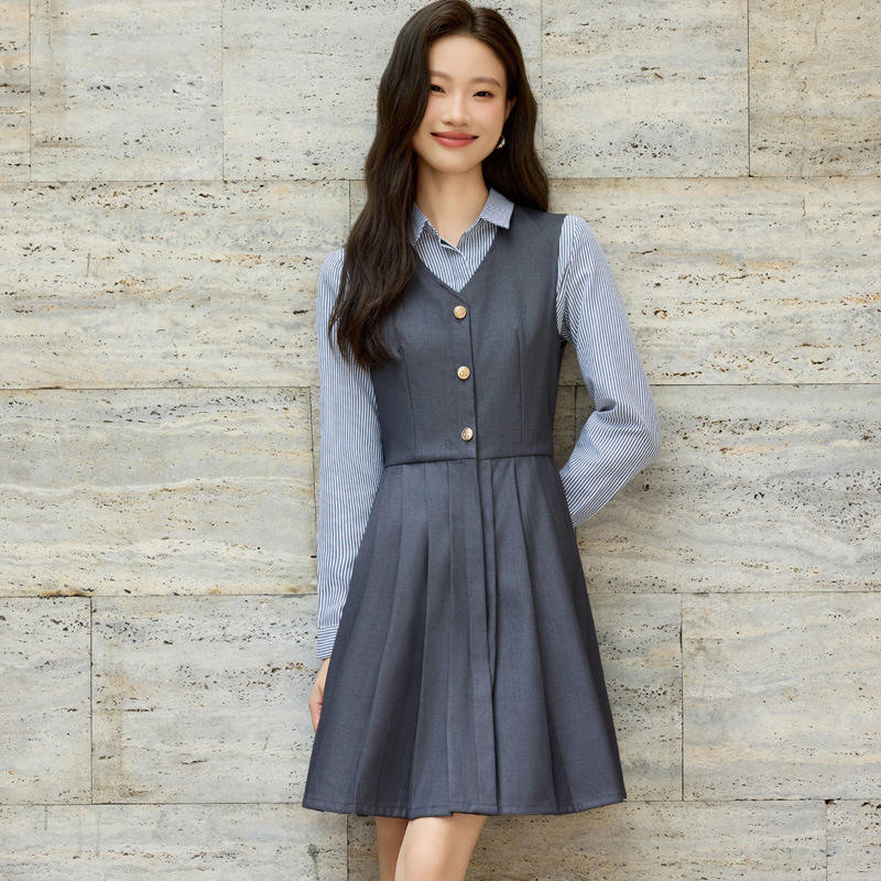 British Style Vest Dress Set For Girls Spring Summer JK Pleated Skirt School Uniform Solid Color Oxford Fabric No-Wrinkle