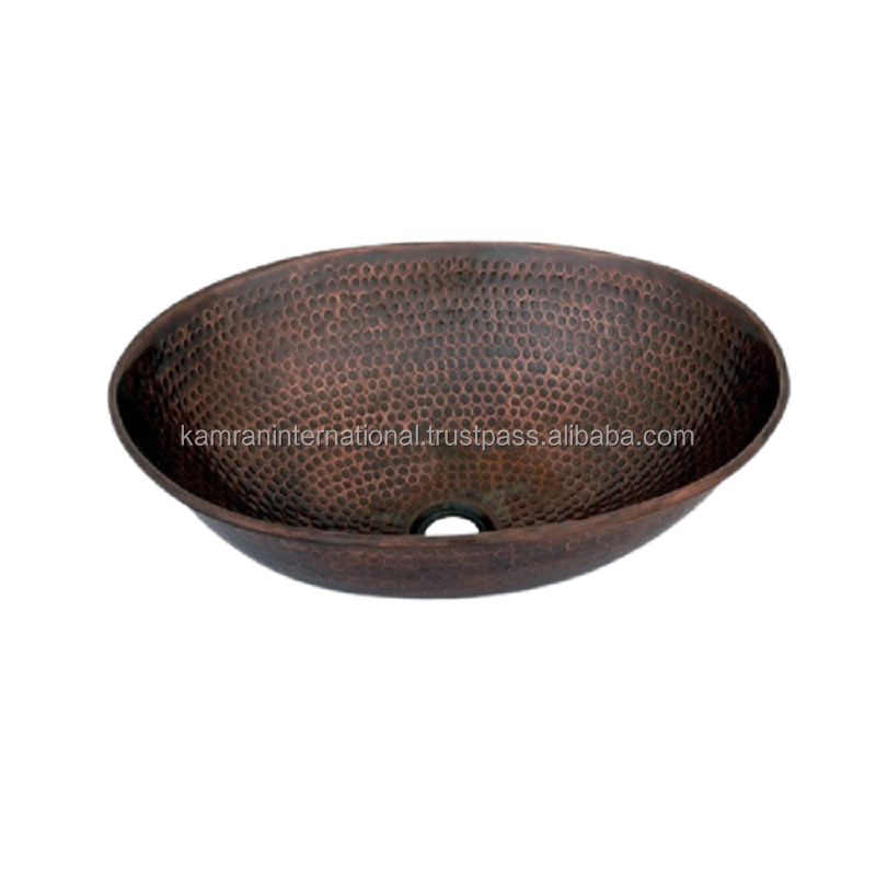 Fregadero de cocina redondo de un solo cuenco de bronce Cobre Acero inoxidable martillado con grifo de un orificio Fácil instalación debajo del montaje