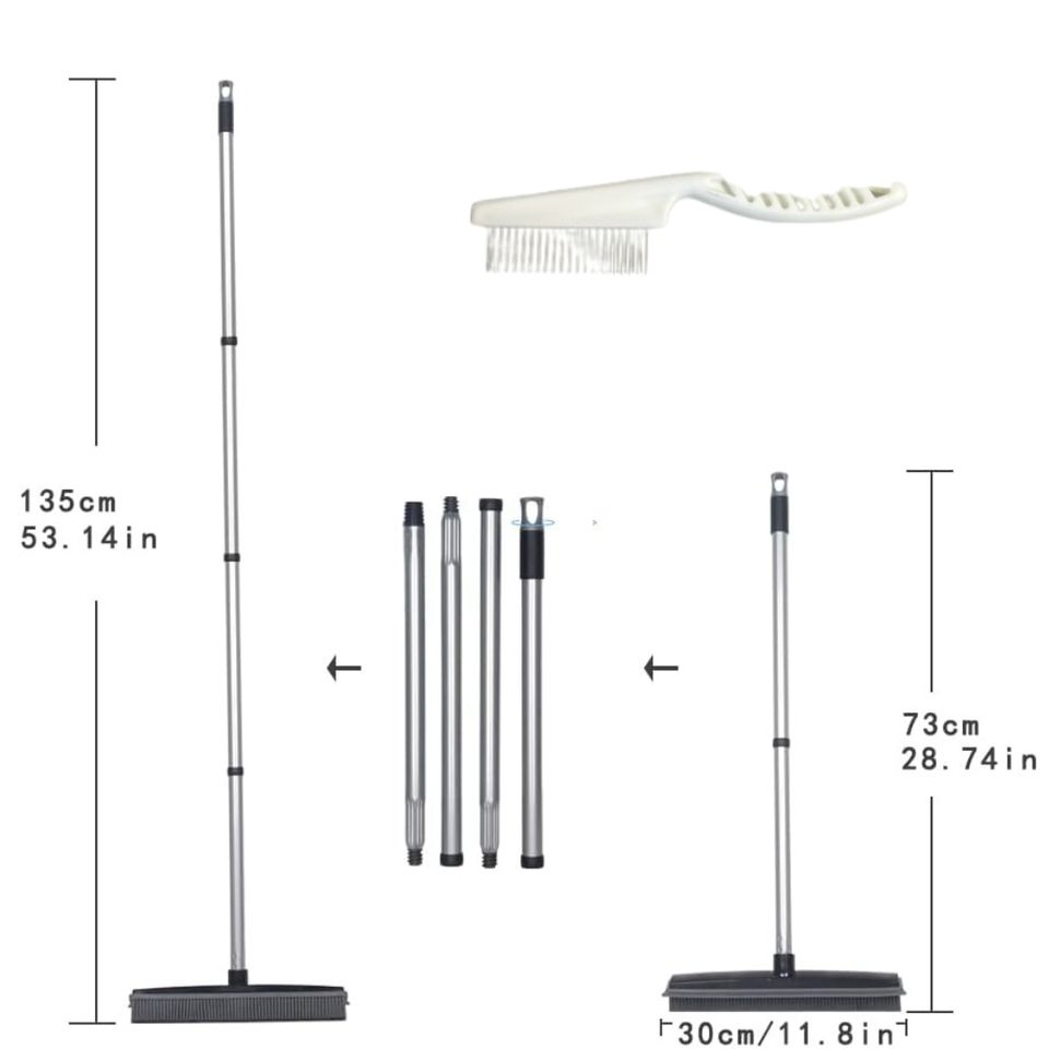 Escoba con mango ajustable y extraíble, cabezal ergonómico inclinado, cerdas de limpieza, montaje en pared incluido, limpieza telescópica