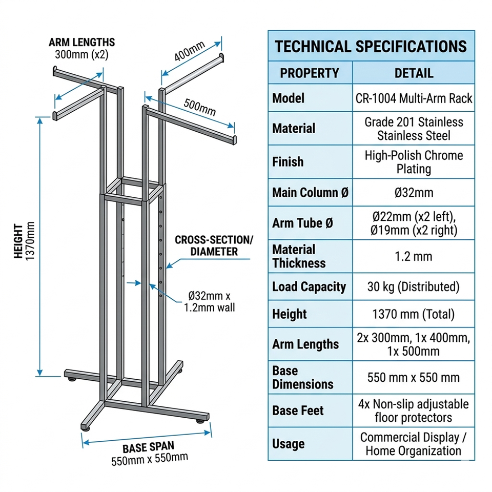 Expositor de Ropa Plegable de Metal Cromado Resistente Portátil Desmontable para Venta Minorista OEM ODM Vietnam