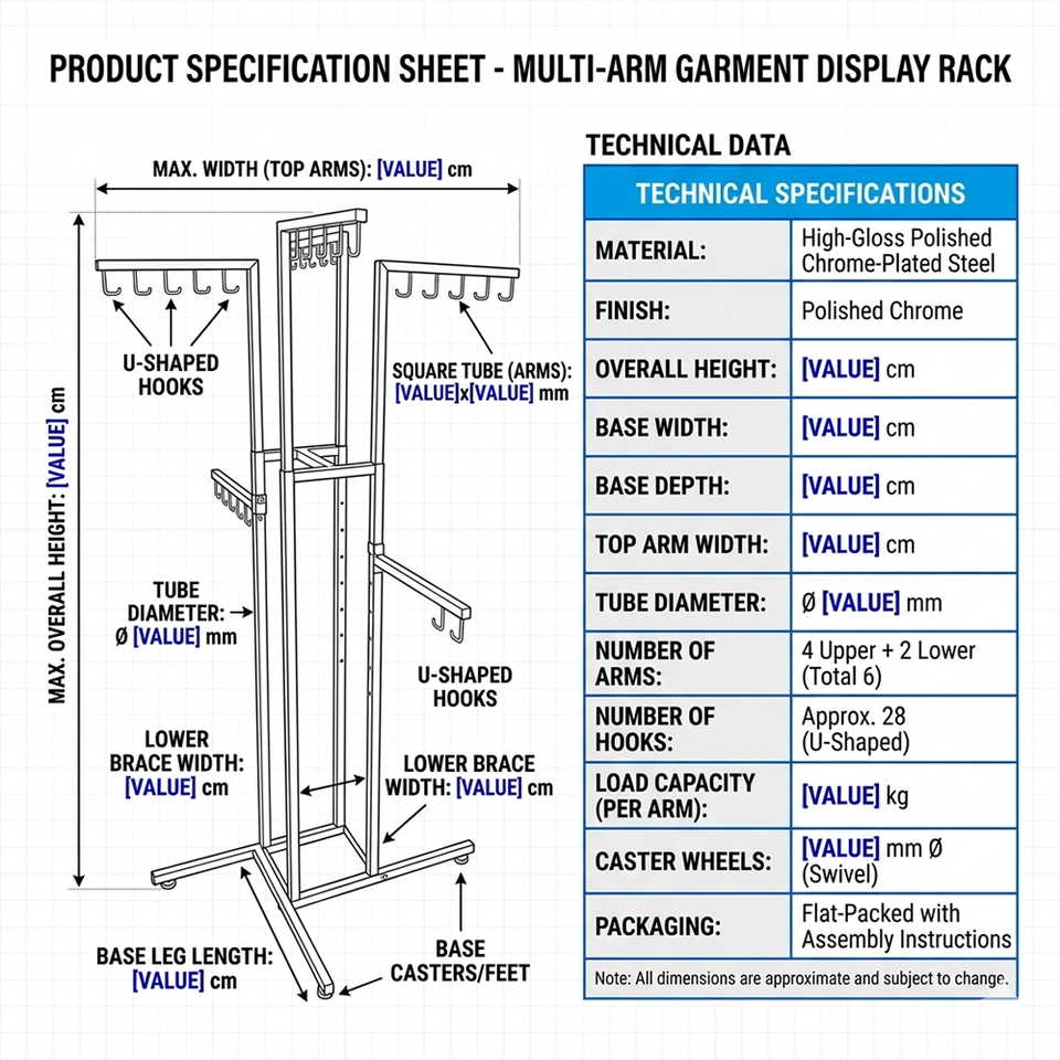 Expositor de Ropa Portátil de Lujo Bros Display, Plegable, de Acero Cromado, Resistente, Soporte para Ropa Independiente