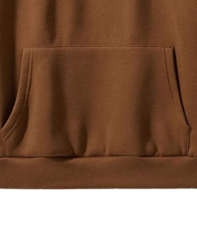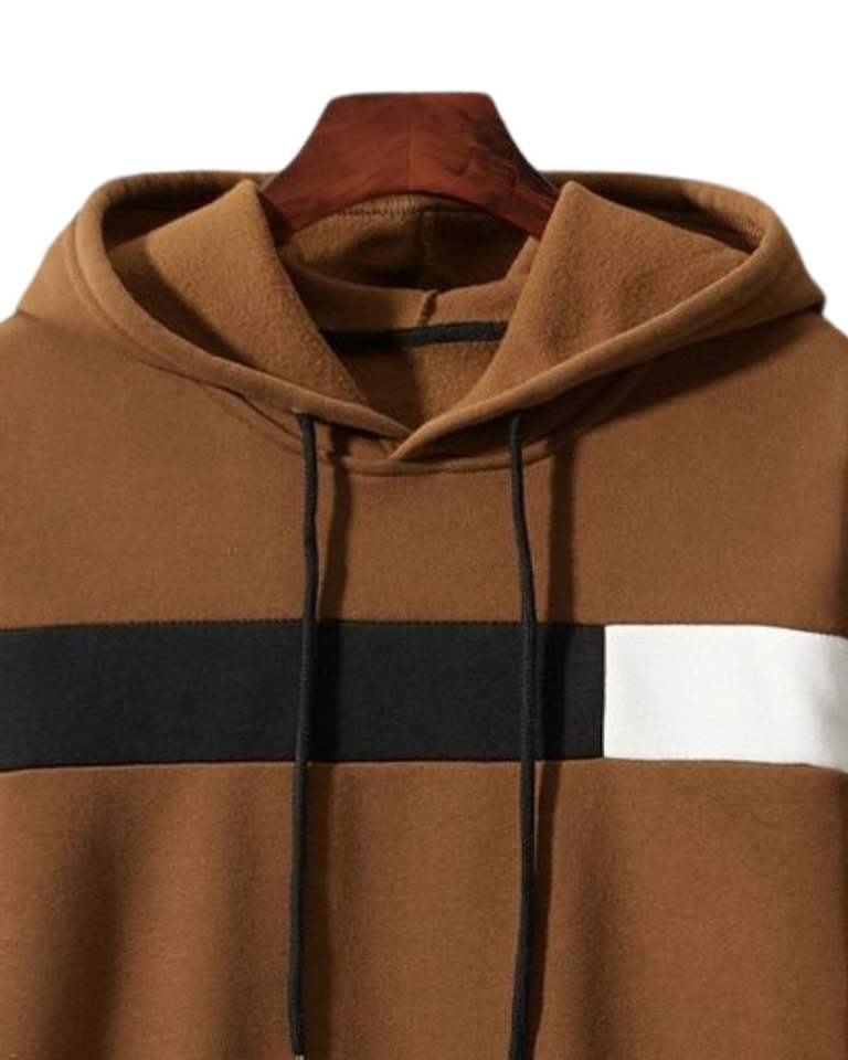 Sudadera con Capucha Color Block Marrón y Negro, Unisex, Informal, de Forro Polar, con Bolsillo Tipo Canguro, Suave, Cálida para Invierno, Estilo Urbano