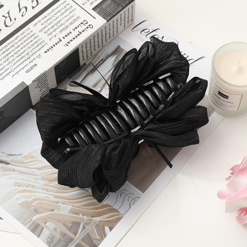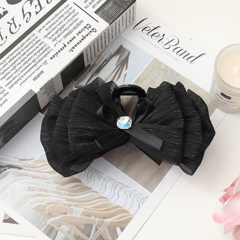 Elegante Pinza para el Cabello con Lazo Marrón y Diamantes de Imitación, Pinza de Garra de 12 cm para Uso Diario de Mujeres