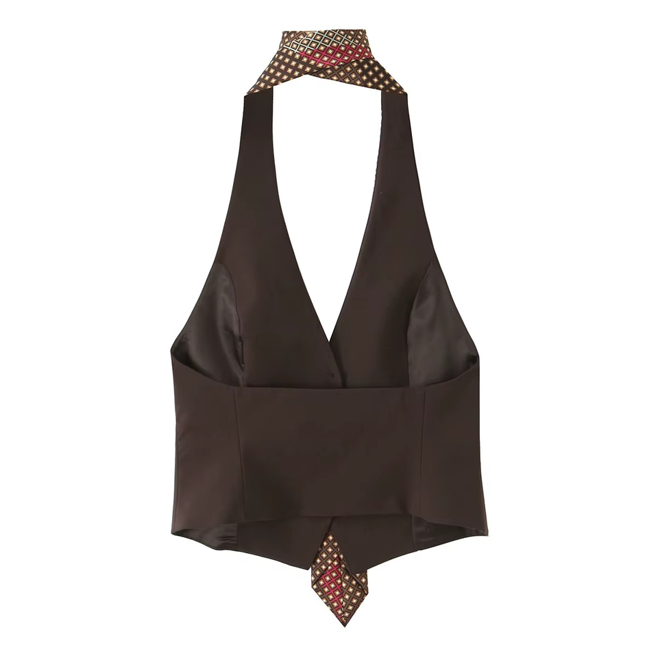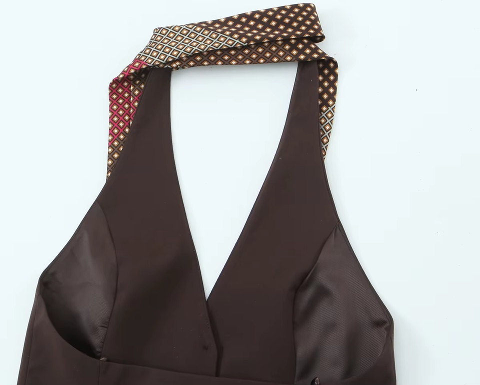Top Halter de Verano para Mujer, Color Marrón, con Botones en la Espalda, Diseño Casual y Elegante