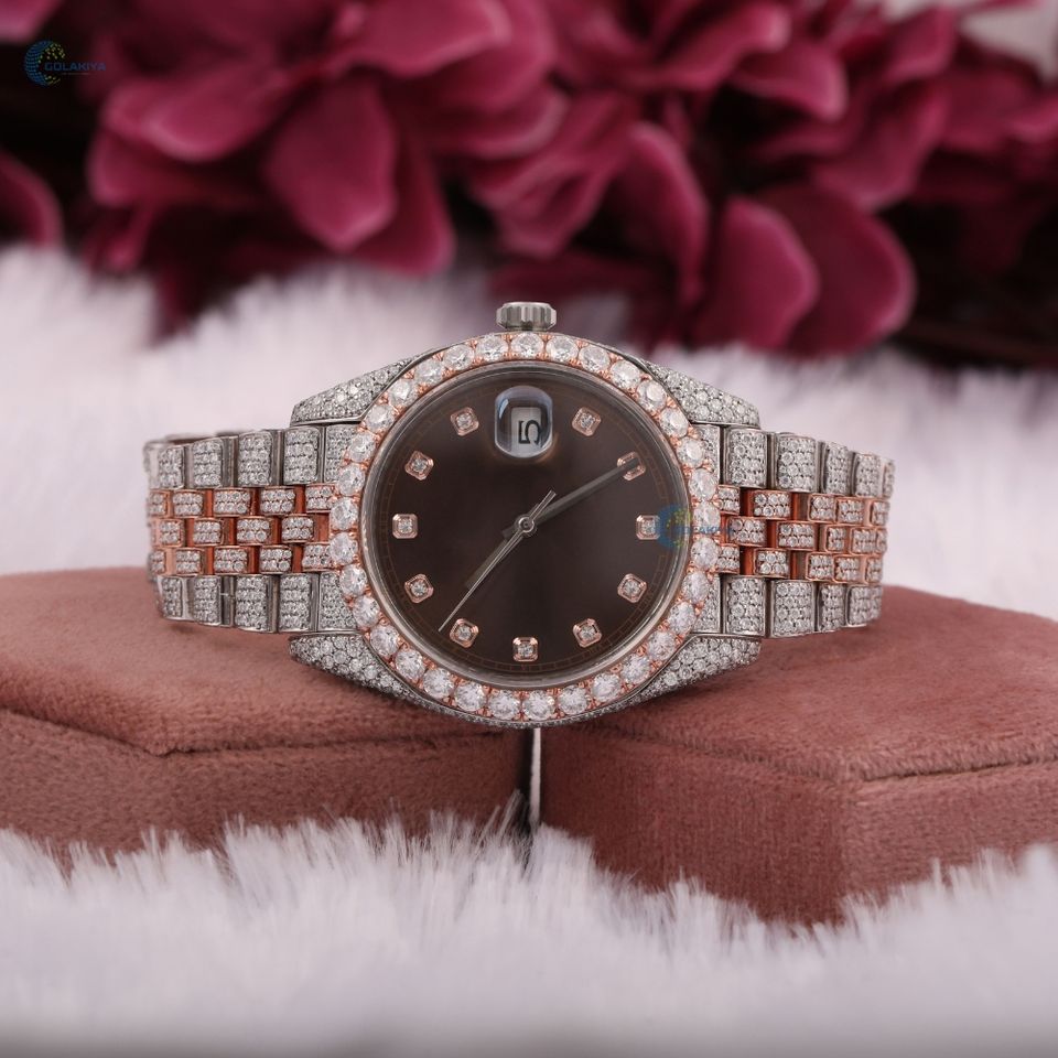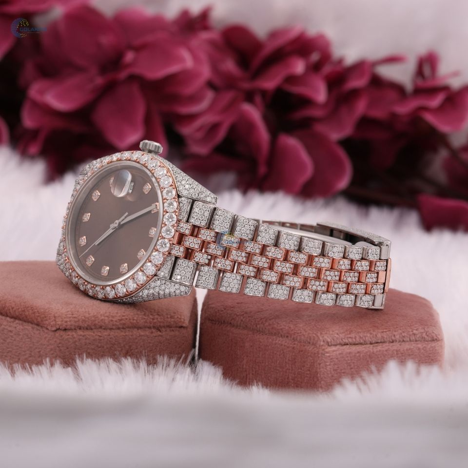 Reloj Moissanite para hombre con esfera marrón, reloj de pulsera de acero inoxidable con indicador de Fecha