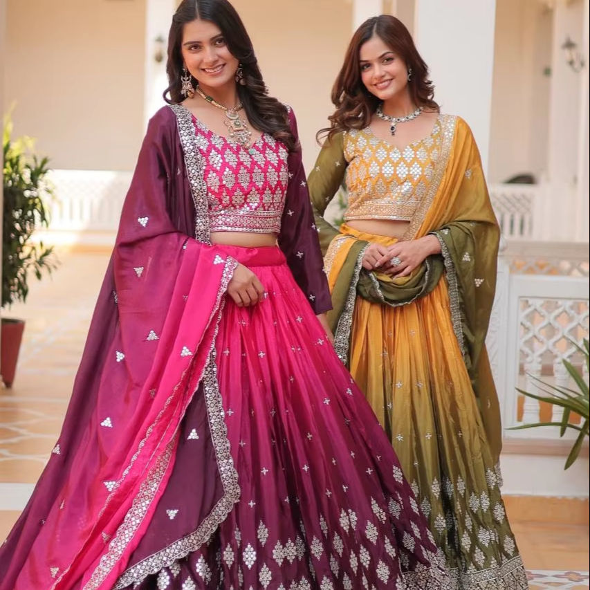Tipo:Lehenga Bordado Secuencia de desgaste de fiesta