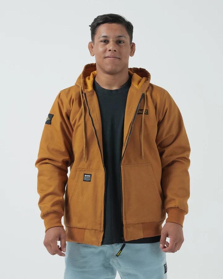 Sudadera con Capucha Marrón para Hombre, Estilo Vintage, 100% Algodón, Oversize, con Parches Desgastados, Lavado Ácido